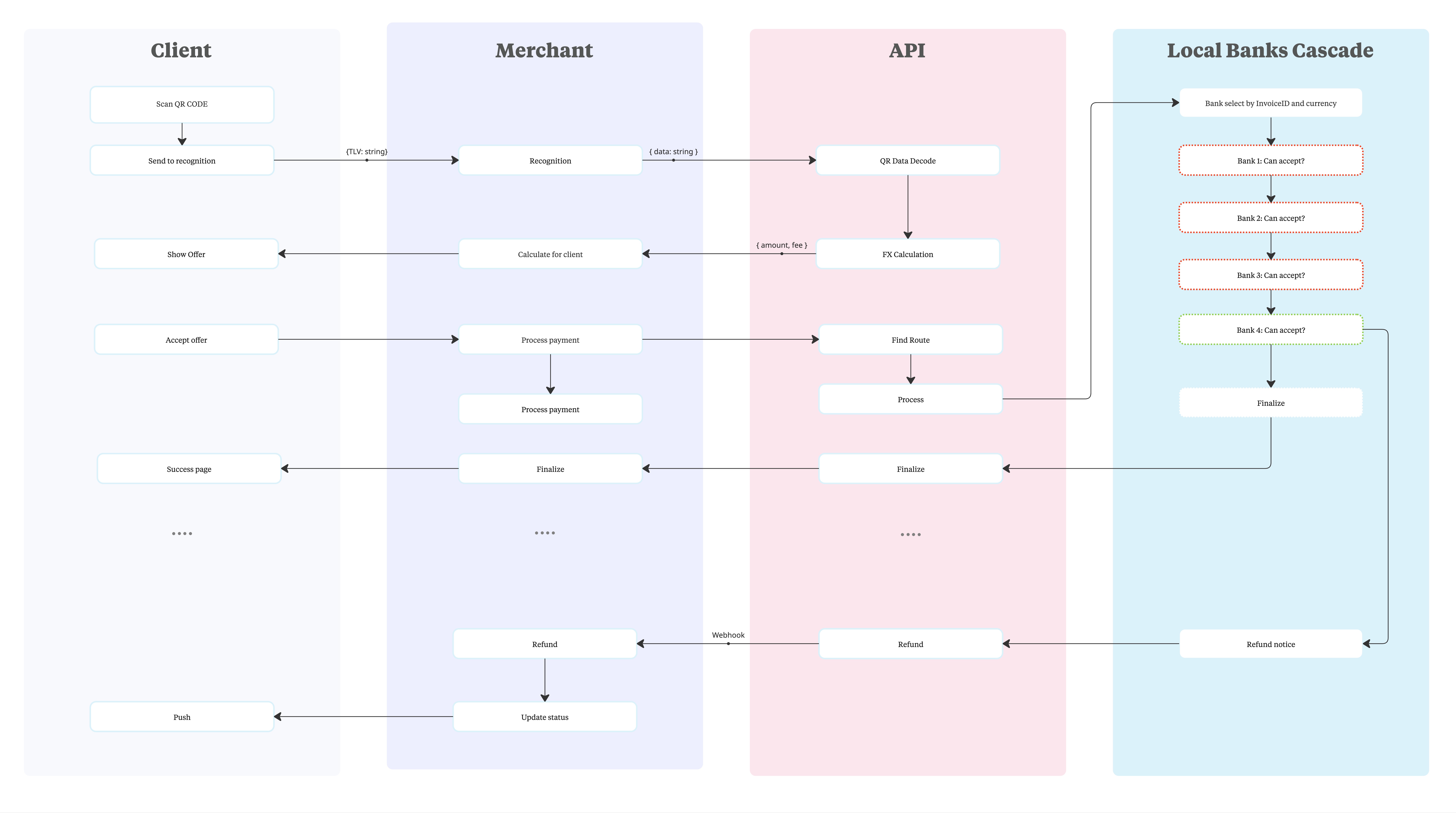 Our service provides the ability to integrate payment by QR codes in various countries. This can be useful for expanding customer service and generating revenue through additional services.