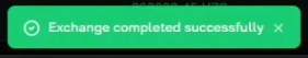 Once you accept the exchange operation, you'll be shown a notification message at the bottom of the screen: