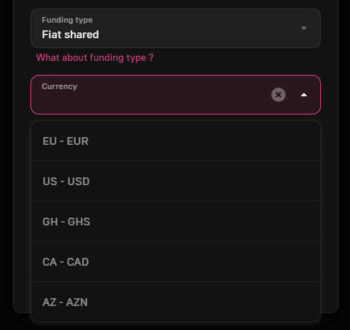 In the Funding type dropdown, select either Fiat isolated or Fiat shared.