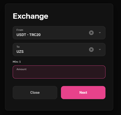 A Currency dropdown will appear, allowing you to choose your preferred fiat currency (for example, UZS).